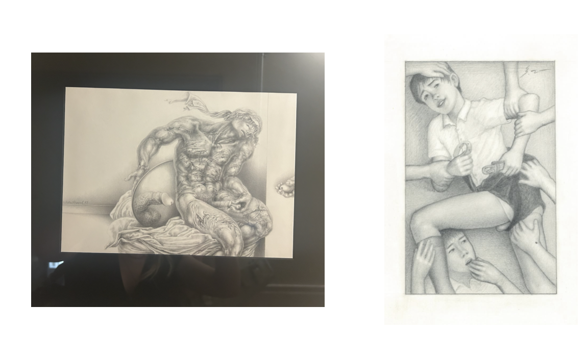 Later, I turned around and watched a young man with a perfect jawline pose with his Lacoste polo collar popped before a photograph of a pornstar in a domestic scene. He said to his friend: "Look at me."