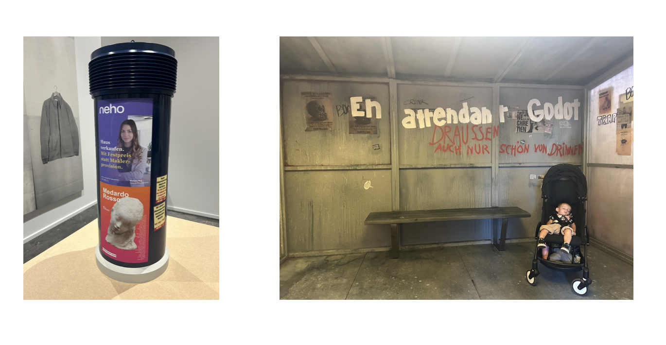 Jane dropped me off at the location of callie d. cohen's solo presentation, aletheia, curated by K. O. Nnamdie for their new gallery, Eidmann. Located in an apartment above Sunset, the exhibition fused the natural light and duality between the glamorous life below and the seclusion of this apartment in the hills. cohen's paintings, lace pressed onto wood panels; and various found objects, like silver Doc Marten boots, a glass eyeball, an old polaroid of the artist, and others created a fragmented conception of identity in flex. Evolving from their time at anonymous, K.O. Nnamdie heightens the presentation by its environmental context and exploration of identity against complicated signifiers.