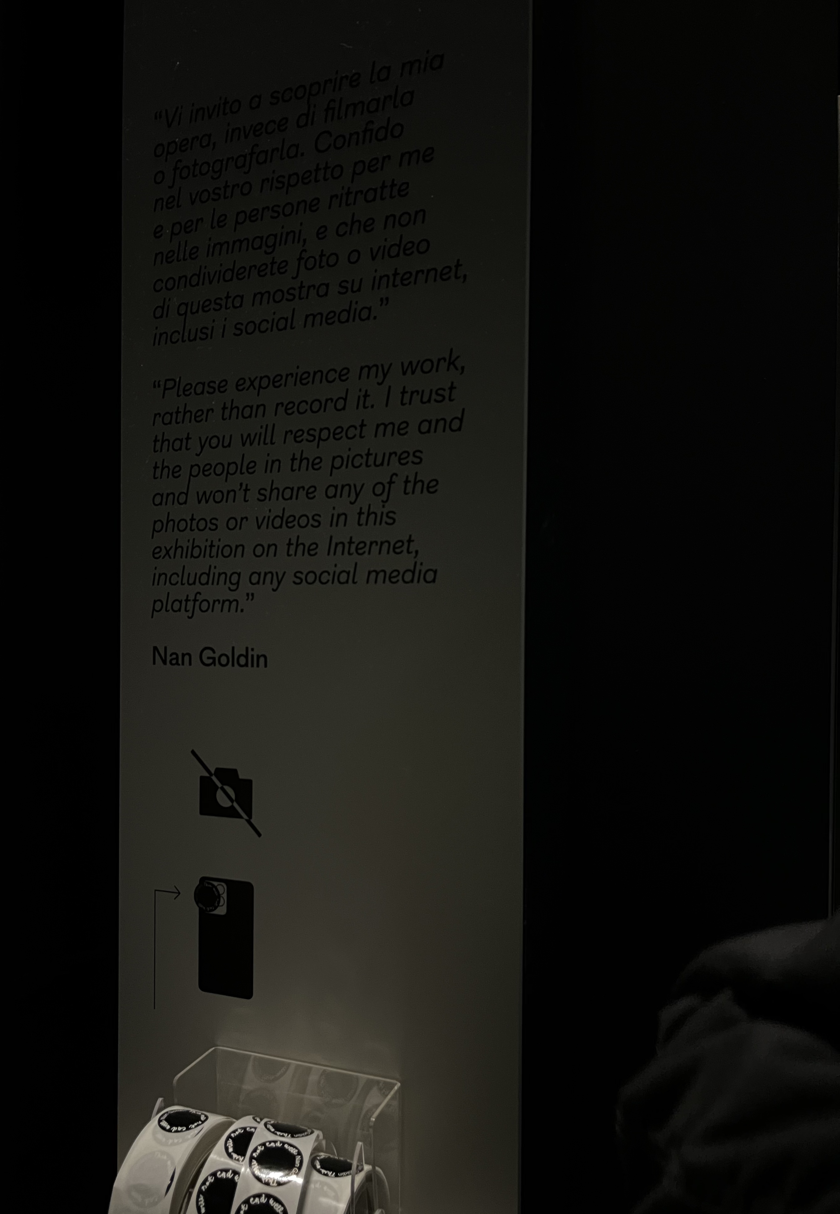 What we certainly weren’t craving in Milan was yet another slideshow of Nan Goldin’s portfolio. This format applied to her work is now as tasteful as that piece of Brooklyn gum you've chewed for ten minutes. Please note that, in this case, that piece of gum has been passed from mouth to mouth for at least 20 years. Terrifying.